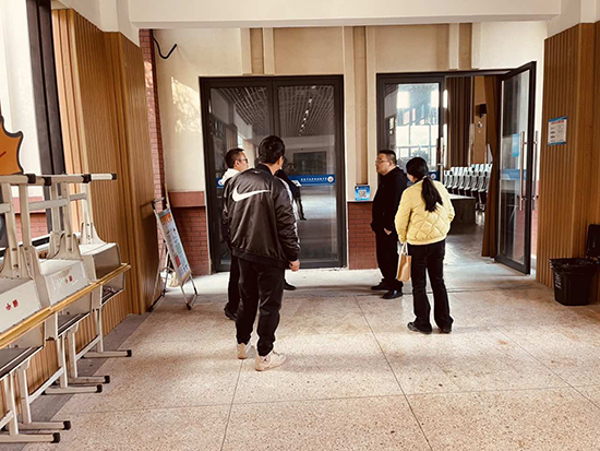 在枫桥镇中心学校副书记兼枫桥镇初级中学校长杨立波、副校长戴烨、安管主任汤钢锜的陪同下,调研组实地踏看校园,重点围绕校园安全网格员制度落实情况展开问询,详细了解安全隐患上报、处置、解决的全流程机制。杨立波、戴烨结合学校工作实际,逐一进行汇报解答。徐志洪强调,要充分发挥校园安全网格员的职能作用,明确岗位职责、细化工作举措,切实做到隐患排查不留死角、问题整改及时到位,筑牢校园安全防线。