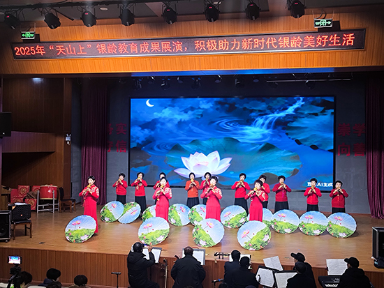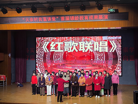 12月24日下午,安吉县天荒坪镇山河村文化礼堂内欢歌笑语、暖意融融,天荒坪中心成校“迎2026元旦银龄教育成果展演”在此精彩上演。天荒坪中心成校及下属上墅成校、山川成校的老年长班学员联袂献艺,近300名村民欢聚一堂,共赏这场充满银发活力的文化盛宴。