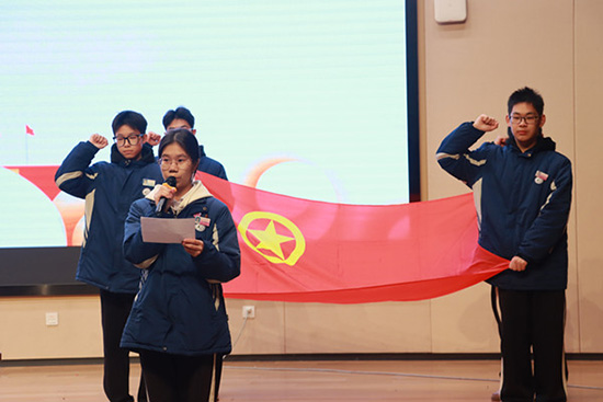 在优秀团干曾琳涵的带领下,新团员们高举右拳,面向团旗,进行了庄严的入团宣誓。誓言铿锵有力,充分表达了新团员们对团组织的忠诚与对未来的坚定信念。