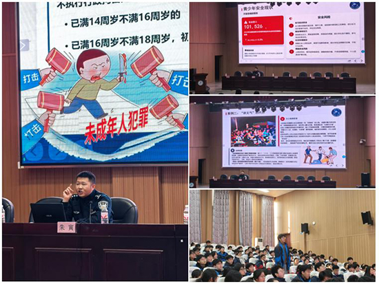 授牌仪式后,活动进入法治与成长教育环节。警暖少年工作室朱寅警官面向在场学生作专题宣讲,围绕校园欺凌、防范毒品、规范日常行为边界等内容进行普法教育,引导学生增强法治意识和自我保护意识。