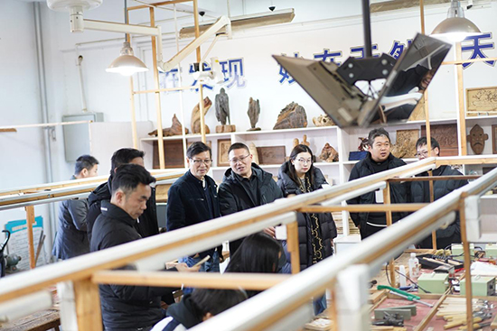 来访嘉宾依次参观了学校的木雕实训室、民间工艺精品馆、汽修钣金与油漆实训室、汽车营销实训室、服装实训楼及创客教育展厅,对学校特色实训基地建设和实践教学成果给予高度评价。