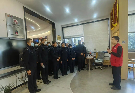 红枫义警工作室始终秉持“崇法尚义、积安向善”的理念,深耕民生平安建设,在治安防范、纠纷化解、法治宣传等领域积累了丰富的实战经验。工作室负责人陈荣周向师生们详细介绍了队伍的发展历程:2017年7月,在枫桥派出所的指导下,陈荣周携手镇上热心街坊组建了“红枫义警”协会,这也是枫桥镇首个平安类公益组织。这支队伍由退休老人、在职职工等社区居民自愿组成,以“服务社区,守护平安”为宗旨,成为了守护枫桥镇的一支重要“新警力”。平日里,义警们穿梭在街头巷尾,肩负巡逻防控、安全宣传、协助警方及调解纠纷的重任,用点滴行动筑牢社区和谐稳定的防线,全力提升居民的安全感与幸福感。目前,红枫义警已拥有171名正式队员,生动诠释了“警力有限,民力无限”的深刻内涵。该团队多次荣获“优秀志愿服务团队”“社区安全防范先进集体”等荣誉称号,并于12月5日在浙江省志愿服务项目大赛暨品牌展示交流活动中,以95.91分的最高分斩获省级金奖殊荣。