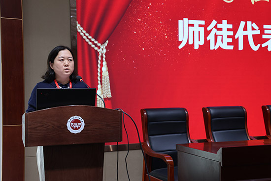 师徒代表发言环节,温情满溢。教学导师代表朱培培,以指导之责立誓,以“三心”为尺,丈量教育初心:以匠心打磨每堂课,凭耐心陪伴青年教师成长,用赤子心坚守教育初心;提 “共生”理念,认为青蓝结对是双向成长,青年教师的活力能促师傅再学习,师傅的经验可助青年教师少走弯路;还以“远见”寄语,愿做引路人与同行者,与大家共勉“一辈子做教师,一辈子学做教师”,助力构建优质课堂。承诺毫无保留分享教学经验与巧思,为新教师成长扫去弯路;德育导师代表陈莹,细数德育日常的“细水长流”——晨光迎生、耐心伴谈,忆初为班主任的手足无措,念老教师帮扶之恩,愿作青年教师“同行者”,共解难题、同学新思,倾囊相授盼其绽放德育光彩。
