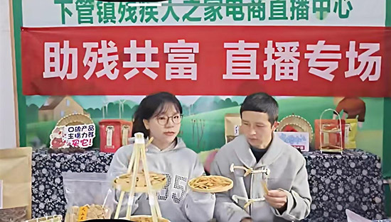 直播助农,首战告捷。最令人期待的环节,当属“虞里·助残商品汇”首场直播带货。此前,学校电商专业教师已对残疾人之家的朋友们开展系统培训,并选出小杰、小锋两位担当首次直播的土特产代言人。当天,师生们与这两位“家乡土特产推荐官”默契搭档,提前紧锣密鼓地完成场景布置、商品陈列。上午10时10分,直播准时开播。镜头前,小杰、小锋从容自信地推介笋干菜、年糕片、番薯干等本地农特产,电商专业学生则从旁协助,介绍产品特色、解答网友疑问。这场充满温情的直播,吸引了1485人次在线观看,斩获69单订单,成交额突破2000元,转化率高达4.65%,交出了助残共富的亮眼“首战成绩单”。