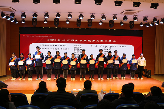 本次表彰大会不仅是对获奖师生的肯定与嘉奖,更激发了全校师生钻研技能、奋发向上的昂扬斗志。相信在榜样的引领下,临平商贸的学子们定能在技能报国的道路上绽放更加绚丽的芳华!(杭州市临平商贸职业高级中学)