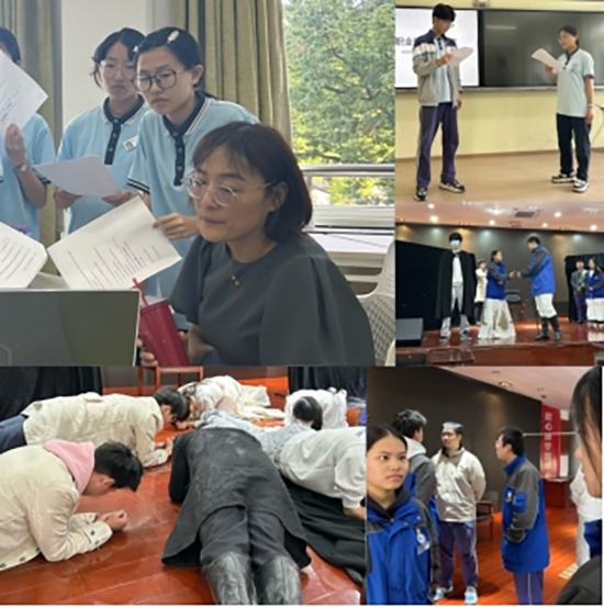 指导教师团队更是全程护航。结束授课任务后,老师们便立刻投入排练指导,从剧本解读、古英语校正到舞台调度设计,每一个环节都亲力亲为。正如同学们回忆:“为了贴合中戏舞台的呈现效果,老师带着我们反复调整走位,直到所有人都找到最佳状态,常常忙碌到忘记休息。”这份对艺术的较真与对学生的负责,正是临平职高教师风采的生动体现。