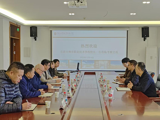 为深化中高职一体化办学改革,拓宽人才培养路径,2025年12月16日上午,乐清市柳市职业技术学校书记兼校长陈肖龙带队,率副校长何国勇、教务处主任陈旭淋、教务处副主任叶艳艳一行4人,前往浙江工贸职业技术学院光电制造学院开展校际交流活动。浙江工贸职业技术学院光电制造学院院长郑道友、专业主任潘康俊热情接待了乐清市柳市职业技术学校交流团一行人。