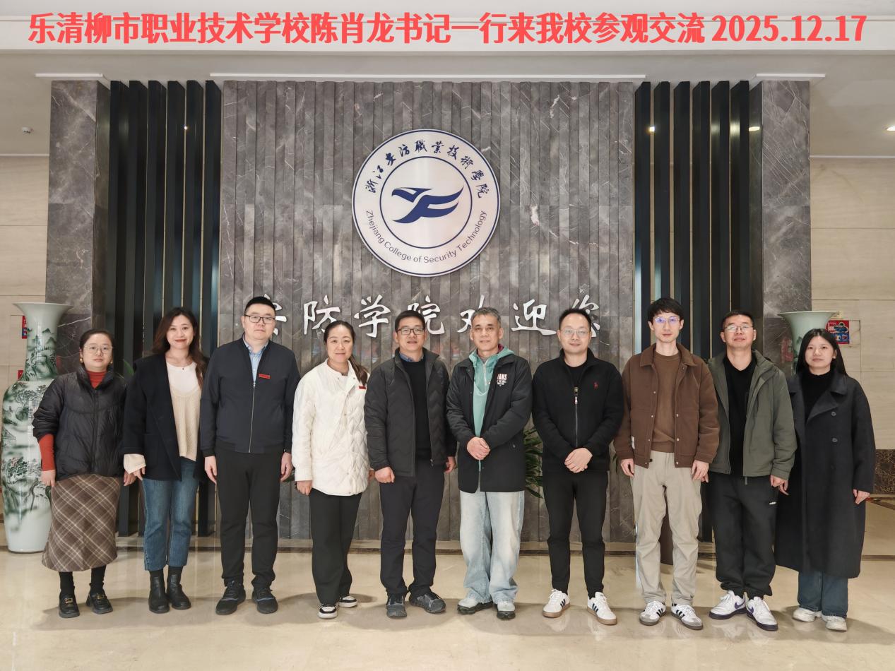为深化中高职协同育人机制,推动人才贯通培养落地落实,近日,乐清市柳市职业技术学校校长陈肖龙率队前往浙江安防职业技术学院开展校际交流。副校长何国勇、教务处主任陈旭淋、实训处主任胡建良、教务处副主任叶艳艳共同参与本次交流。活动聚焦专业共建、课程衔接、过程管理等关键环节,旨在共商一体化培养路径,共谋教育协同发展。