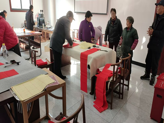 书法班陈方清老师表示,此次活动特别融入了马年主题创作,学员们在练习中不仅提升了书法技艺,更深入了解了生肖文化。两个多小时的活动共送出春联、福字两百余幅,红彤彤的春联映照着居民的笑脸,为寒冬增添了融融暖意,也传递出社区邻里间的新春祝福。(郭士斌 娄增钢)