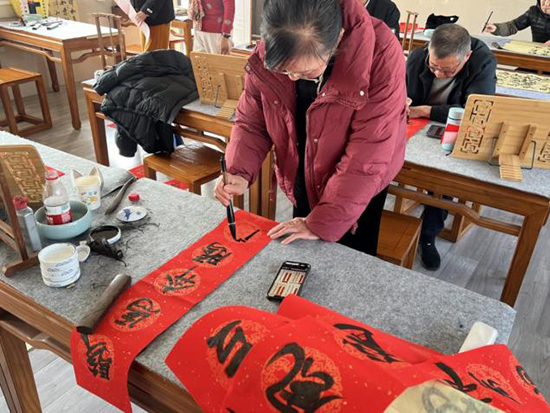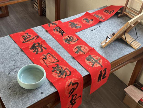 课桌上,连片的红纸取代了平日的素宣。学员们手握毛笔,笔尖流淌的不再是寻常书法字,而是一个个圆润饱满的“福”,一副副墨韵盎然的春联。红纸黑字间,年的气息就这样在教室里弥漫开来。