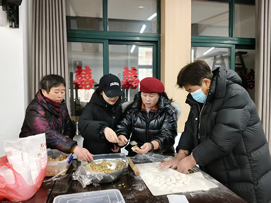 养生讲座结束后,包饺子环节正式拉开序幕。武康成校精心准备了新鲜的馅料、劲道的面团,面点缪师傅现场示范揉面、擀皮、包馅的技巧,手把手指导居民们操作。老人们围坐在一起,分工协作、各展所长,有的熟练擀皮,有的巧手包馅,现场弥漫着面粉的清香与欢声笑语。当一锅锅热气腾腾的饺子端上桌,大家围坐分享美食,畅谈生活趣事,温热的饺子暖在胃里,邻里间的情谊甜在心里,现场暖意融融。