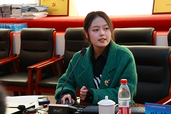学员代表刘素硕老师发言。对市教育局、设站学校及戴建法老师搭建的高水平学习平台表达诚挚的感谢。未来她将全身心投入到工作站后续的各项研修活动中,主动学习,积极研讨,勇于实践,努力将名师的经验与智慧内化为自身的教学能力,并期待在与各位同行伙伴的切磋互助中,实现共同的成长与超越。