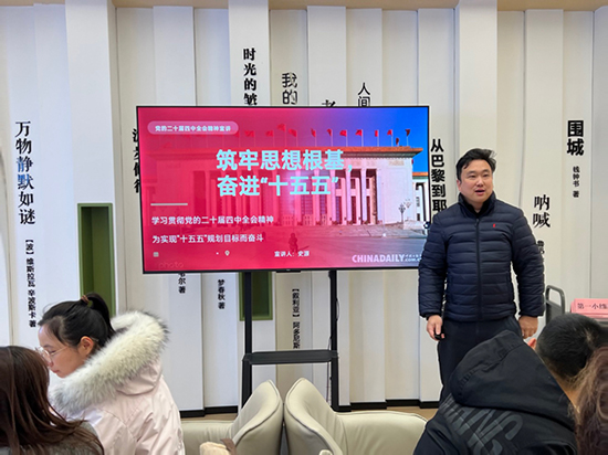 学院党委委员、党务办主任史源为全体党员带来《筑牢思想根基,奋进“十五五”》专题党课。党课系统阐述党的二十届四中全会精神,并结合“十四五”时期取得的重大成就,深入剖析“十五五”时期面临的机遇与挑战。史源巧妙运用数据对比和案例分析,引导党员教师深刻把握国家发展大局,自觉思考在新时代的职责与担当。