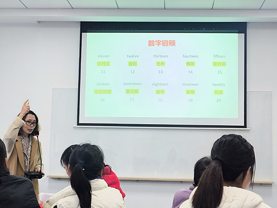 课程伊始,葛秀华副教授以“英语数字”为切入点,通过快速问答、情景对话等方式带领学员回顾上节课内容,帮助大家巩固英文数词的发音与用法。“从‘one’到‘one hundred’,这些数字在日常交易、游客接待中太实用了!”余村商户王大姐边记笔记边感慨。