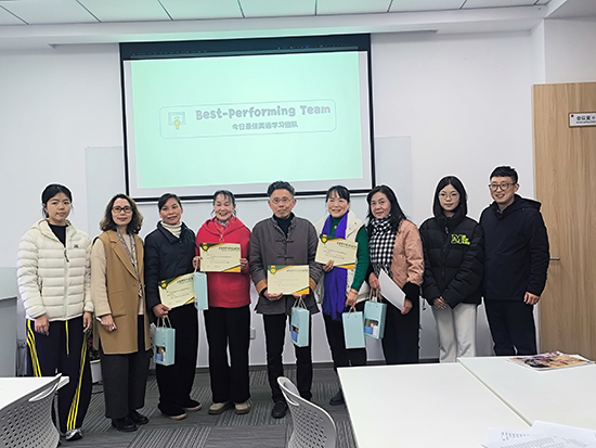 为提升学习趣味性,活动设置了“单词接龙”“你画我猜”等游戏环节,村民们分组竞赛,笑声与掌声此起彼伏。同时,来自天荒坪成校的志愿者全程跟班辅导,针对基础薄弱的学员进行“一对一”纠音,确保每位参与者都能跟上节奏。“老师讲得细致,志愿者也很有耐心,以前不敢开口说英语,现在能简单交流了!”刚获得“今日最佳团队”成员的村民李大哥举着荣誉证书笑道。