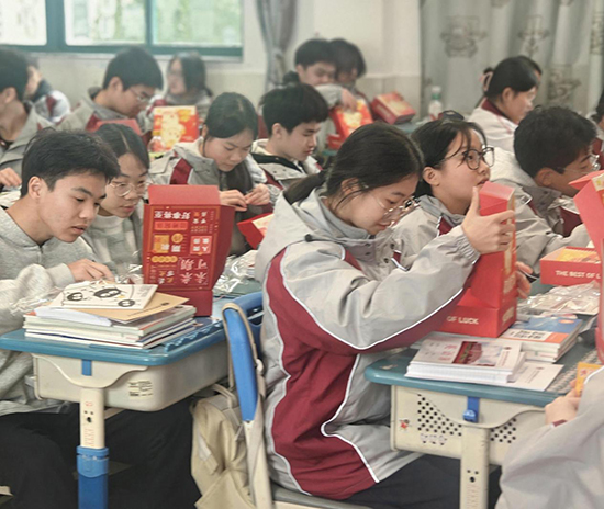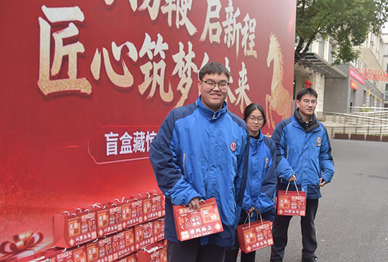 在校门口展板处,一批批高辅班学生陆续走来,原来这里正在进行新学期“祝福盲盒”大放送。23财旅高辅、23烹饪高辅、23化工高辅等班级的同学们在班主任带领下,有序来到盲盒礼包前,领取一个个精心包装的盲盒礼袋并合影留念。高一、高二年级的盲盒则由班主任提前领取在班级进行惊喜放送。“我抽到了一个写有‘前程似锦’的徽章!”“我的是‘逢考必过’系列幸运贴纸!”现场不时传来同学们的惊喜欢呼。据悉,每个盲盒内都装有不同的祝福语贴纸或小纪念品,寓意新学期每个人都能收获属于自己的精彩。“盲盒不仅是惊喜,更承载着学校对同学们的殷切期望,也希望高辅班学生在高三冲刺阶段马不停蹄、奋力拼搏、马到成功。”学生成长中心相关负责人表示。