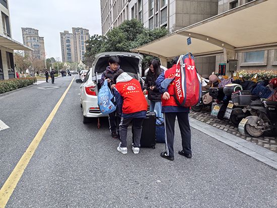 师生志愿者在各自岗位为家长们、同学们热情服务,“红马甲”成了校园一道靓丽的风景线。