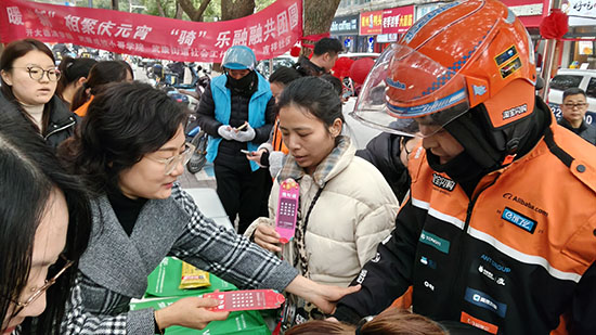 汤圆飘香处,团圆味正浓。志愿者们早早支起炉灶,将一碗碗热气腾腾的元宵送到骑手们手中。黑芝麻元宵软糯香甜,驱散了初春的寒意,更温暖了奔波的心田 。“平时我们都在路上跑,很少有机会好好过个节。今天能和大家一起吃元宵、猜灯谜,感觉特别温暖,就像在家一样。”外卖骑手小李师傅捧着热元宵,脸上洋溢着幸福的笑容。