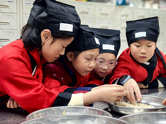 活动首站,孩子们走进了一堂生动的“中医药启蒙课”。在专业老师与志愿者的引导下,枸杞、陈皮等常见中药材不再是陌生的名词,而成了可以触摸、细闻、辨识的实物。孩子们好奇地观察着药材的形态,聆听着它们“药食同源”的故事与功效,初步领略了中医药文化的博大精深。随后的针灸、艾灸、拔罐知识浅析环节,通过模型演示和原理讲解,揭开了这些传统疗法的神秘面纱,使其以科学、安全、贴近生活的形象深入孩子们心中,激发了他们对祖国传统医学的浓厚兴趣。不少家长也兴致勃勃地参与体验,一位家长表示:“以前觉得中医很深奥,今天和孩子一起学习,发现它其实很贴近生活。”