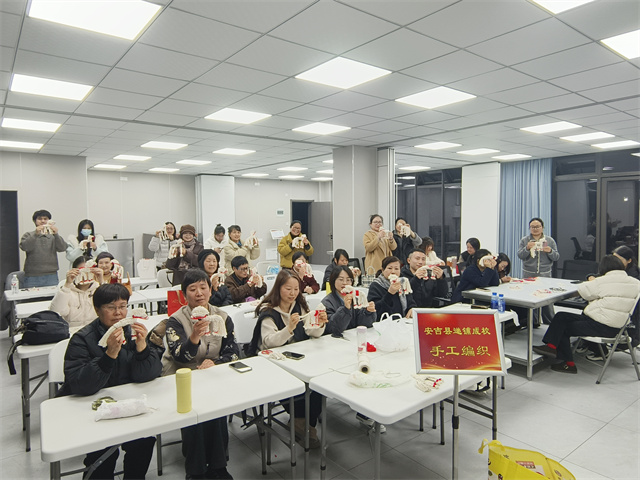 开班当晚的课堂氛围十分浓厚。非遗剪纸课上,学员们在老师的细致指导下,熟练掌握纸张折叠、纹样裁剪等技巧,一步步完成了一幅幅寓意吉祥的百变团花创作——这种呈圆形花样、四面均齐的剪纸形式,承载着人们对美好生活的期许,也让学员们在动手实践中感受非遗文化的魅力。手工编织课堂上,学员们专注投入,在老师的耐心讲解下,一针一线勾勒,亲手完成了一个个灵动可爱的绳编小马作品,马的意象既契合马年主题,也承载着“马到成功”的美好祝福,看着自己的劳动成果,学员们纷纷表示收获满满、倍感充实。