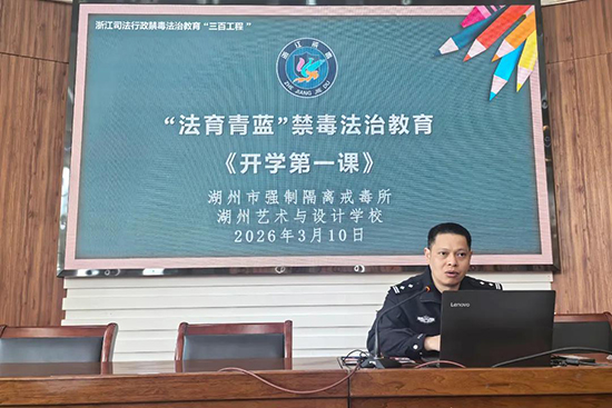 为进一步加强校园禁毒宣传力度,提高青少年学生的识毒、防毒、拒毒意识,3月10日,湖州市强制隔离戒毒所的徐警官与王警官受邀来到浙江省湖州艺术与设计学校,为学校4个专业部的代表班级,共138名师生带来了一场生动而深刻的“禁毒教育开学第一课”。
