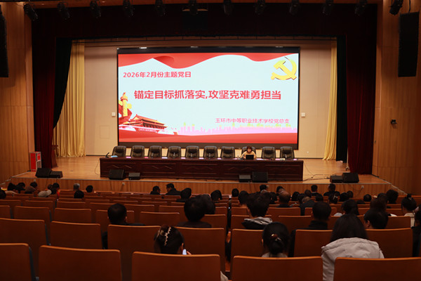 近日,玉环市中等职业技术学校党总支积极响应上级党委号召,在报告厅组织全体党员开展以“锚定目标抓落实,攻坚克难勇担当”为主题的2月党日活动。活动旨在通过深入学习和交流,进一步统一思想、凝心聚力,推动学校各项工作在新的一年里取得新突破。