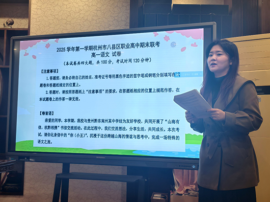 塘栖职高刘雪珂老师对高一测评进行深入分析:突出情境设计与思维层级考查,素材立足课内,兼顾过去、当下与未来三个维度。她提出教学应采用双向设问、任务驱动、三级台阶设计,将基础知识融入真实任务,强化微写作与口语转书面表达训练。