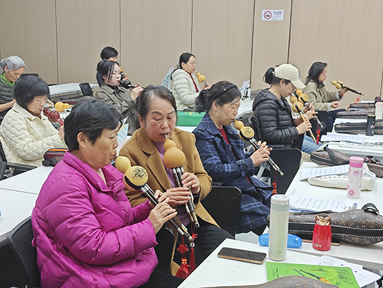日影渐斜,墨香漫溢书画教室。书法课上,学员们凝神临摹名家碑帖,老师逐字点评、精准指导;国画课上,大家挥毫泼墨,在一笔一画间体悟传统文化的韵味与雅致。隔壁葫芦丝班内,悠扬乐声不绝于耳,初学者潜心摸索音阶,老学员则能娴熟吹奏完整曲目,婉转旋律穿过走廊,引得路人驻足聆听、心生暖意。