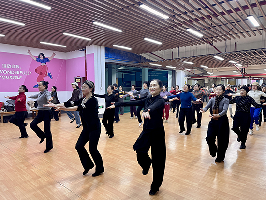 九时整,形体舞班的教室里暖意融融。学员们身着统一练功服,对着落地镜反复打磨动作,伴着轻快旋律,舒展手臂、挺直腰背、迈出优雅舞步。齐中豪老师穿梭在学员之间,耐心示范、细致纠正每一个动作。下课铃响,她虽略带喘息,脸上却满是笑意:“看着姐妹们一天天身姿挺拔、精神焕发,比什么都开心。”