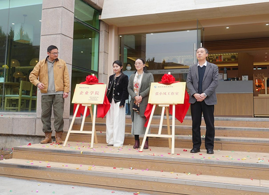 在全场热烈的掌声中,湖州交通技师学院校长张默晗与国家级非遗传承人张小凤共同为“张小凤工作室”揭牌,副校长平平与企业老师吴瑕共同为“企业学院” 揭牌。这不仅是校企双方深化合作的重要基石,更是推动非遗传承与职业教育协同发展的生动实践,标志着以技能传承、人才培育为核心的校企专项合作平台正式落地。“张小凤工作室”落户学院,将成为展示精湛湖笔制作技艺的重要窗口,将为师生们提供一个近距离观摩学习、亲手体验这集传统古法与国礼品质于一身的非遗技艺的宝贵平台。
