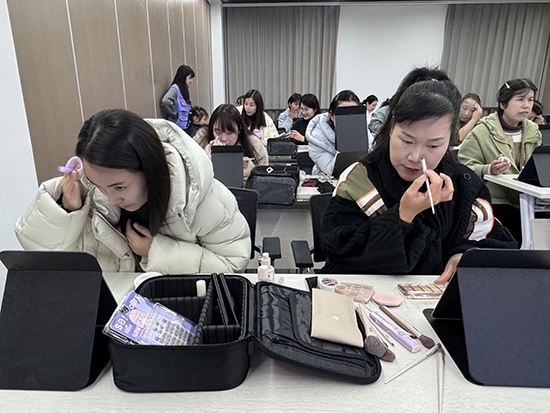 走进美妆班的课堂,空气中弥漫着淡淡的粉香。作为“美·力夜校”的延续,本期美妆班由“美·力妆点站”资深志愿者杨佳妮担任主讲。她从日常护肤步骤讲起,手把手教授底妆技巧、眉眼勾勒与色彩搭配。“眉头要自然过渡,腮红要顺着颧骨轻扫……”学员们聚精会神,时而提笔记录,时而对着镜子认真练习。一位年轻妈妈笑着说:“以前化妆全凭感觉,现在有了专业老师指导,终于能画个清透的日常妆了。”美妆班不仅传授技艺,更在潜移默化中提升着女性居民的自信心与生活品质。