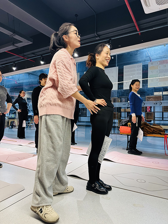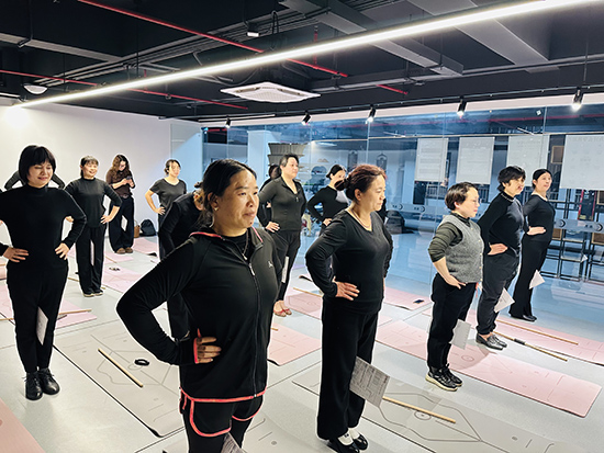 形体班的课堂则是另一番优雅景象。学员们身着练功服,在老师的口令下舒展肢体、调整体态。“收腹、挺胸、肩膀下沉……”从基础的站姿到优雅的台步,每一次练习都在悄然改变着学员们的精气神。几位中年学员课后感慨:“平时家务工作两头忙,很少关注自己的体态。现在在家门口报了形体版,希望调整下状态。”