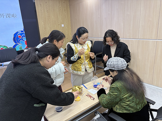 课程中,老师从最基础的构图、掐丝技法教起,耐心演示,逐一指导。学员们全神贯注,细心尝试。从勾勒图案到掐丝成型,从调制釉料到细心点蓝,在老师手把手的辅导下,大家稳步推进,首节课便成功进入了关键的彩绘环节。当画笔蘸取绚丽的釉料,在掐丝轮廓内精心绘制时,缤纷的色彩逐渐在素胚上绽放,传统工艺的匠心之美在指尖流淌。学员们在实际操作中,深刻体验到了非遗技艺的精妙与艺术创造的喜悦。