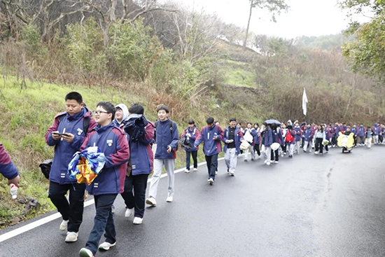 清晨,沃洲校区的学子们整装待发,脸上洋溢着期待与昂扬的朝气。在带队领导的统筹部署下,在班主任及处室成员的全程护航下,学子们有序出发,沿着“沃洲校区→真君殿→外赤坑村→西坞坑村→高来村→沃洲校区”的既定路线,向着山野深处前行,开启了一场与春天、与自我、与团队的深度对话。