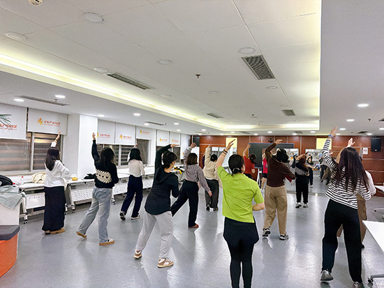 周二晚,动感音乐响起,学员们在老师带领下进行热身组合、高强度间歇训练和有氧操练习。一节课下来,大家满头大汗却笑容满面,大家用汗水释放压力,也用热情点燃了夜晚。
