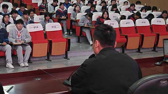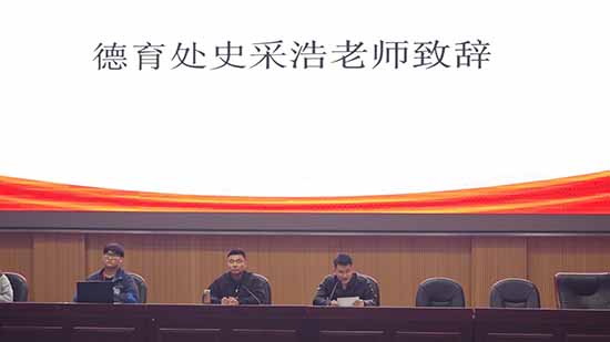 随后,德育处副主任姚杭海老师进行了“收心归位,整装出发”的主题讲话。他深入剖析了当前学生管理工作面临的形势与挑战,从心态调整、观念转变、情绪管控、纪律约束四个方面提出了具体而明确的要求。姚老师着重向同学们强调,自管会干部必须时刻铭记“为学校、为大家”的初心,以平和、包容的心态去开展工作。他要求全体成员要以理性思维去化解同学间的矛盾,以身作则,在日常行为规范上为全校同学树立起值得信赖的标杆。