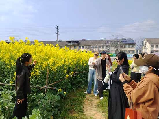 培训现场,秦盱丰老师以田间盛开的油菜花为实景课堂,从构图技巧、光线运用、人物抓拍等方面进行细致讲解与示范。他结合手机摄影的便携性特点,耐心指导学员如何利用身边场景打造富有氛围感的画面,从取景框的选择到快门时机的把握,一步步拆解实操要点。
