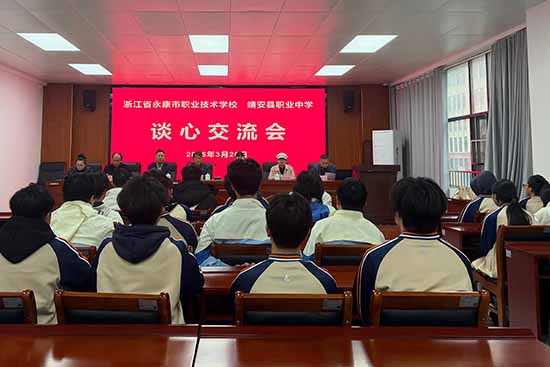 26日,走访组探访了江西靖安县职业中学。在微雨中,走访组参观了靖安职中空气清新布局错落有致的校园,参观了实训实习基地,也看到了靖安职中前身共产主义劳动大学的旧址。随后双方举行座谈。靖安县教育体育局局长张肇吉,靖安县教育体育局党委委员付云龙,靖安职中党支部书记、校长刘宏伟,靖安职中工会主席涂剑明和教务处、招生处、教研处等负责人一起参加座谈交流。双方互相介绍了学校办学特色、成绩经验,总结交流了前期合作经验和不足,并就在校的2025级靖安“永康智能制造班”的人才培养方案、课程设置和教材选择、教师安排等方面进行了结合实际的深入探讨,并提出新的合作意向。下午,走访组和靖安职中的领导们一起与2025级靖安“永康智能制造班”的40名同学举行谈心交流会,向同学们介绍永康市基本情况以及学校和“东迁西归”项目的情况,并倾听同学们的想法,解答同学的疑惑。