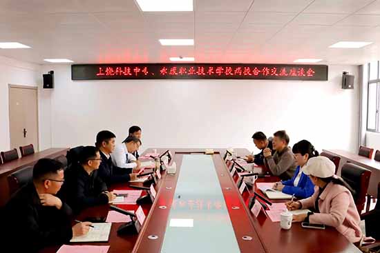 27日,走访组到了位于中国稻都——江西万年的上饶科技中等专业学校。走访组在上饶科技中专赖志华副校长的带领下参观了优美的校园,探访了专业实训基地。随后双方举行座谈。上饶科技中专党委书记吕军、副校长赖志华和教务处、学工处、招就处等领导参加了座谈。双方互相介绍了近几年的发展进步和特色办学经验,回顾总结了2023年—2024年“永康智能制造班”赴永康学习实训就业的经验和教训,并探讨进一步加强学生选派、教师交流互访和专业共建等合作事项。