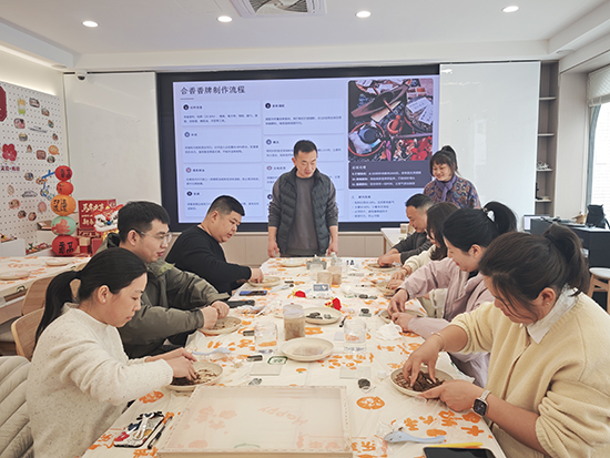 党课结束后开展清廉文化体验活动,两新党支部党员与街区商家党员一同制作清廉非遗香牌。党员们在非遗技艺体验中,认真揉制香泥、精心塑形压模,将“清廉”二字郑重印刻在香牌之上,让廉洁理念入脑入心。