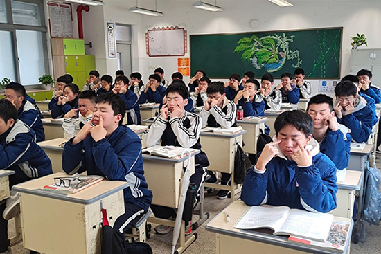 学校将眼保健操纳入日常教学管理常规,由班主任和任课教师共同督促,值日学生干部进行检查评比。从穴位准确度到力度节奏,同学们认真完成每一个动作,让眼保健操真正成为缓解视疲劳、预防近视的有效手段,切实将护眼行动落实到每一天。