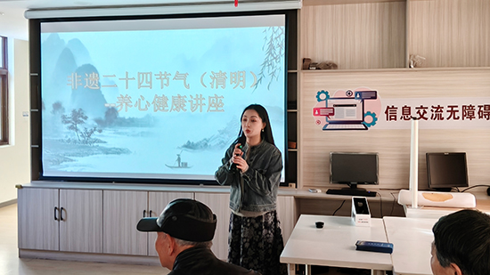 本次活动紧扣节气特色与老年需求,内容丰富、干货满满。活动现场,武康成校老师首先开展二十四节气清明知识科普宣讲,用通俗易懂的语言讲解清明的民俗渊源、物候特征、传统习俗,带领长者重温节气里的传统文化智慧,感受非遗民俗的独特魅力。