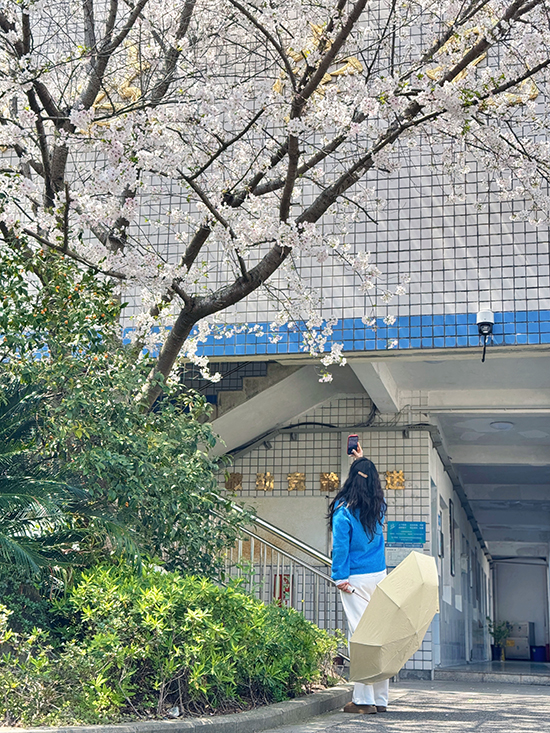 宁波东钱湖旅游学校:樱花盛放 校园披锦绣