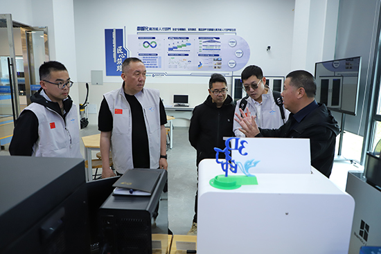 在鄞州职高校长张武剑的带领下,朱波一行参观了校园及四大专业群实训场地,实地考察学校的教学环境与实训条件。