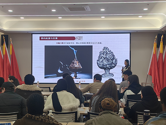制香是非遗,是风雅,是古人“以香养性”的精神追求。留学生们学得认真,有人把香丸搓得圆润光滑,举起来拍照;有人凑近闻了又闻,用英文互相讨论着“沉香”和“檀香”的区别。一位来自摩洛哥的学生说:“以前在电影里看到中国人焚香抚琴,觉得很有意境。今天自己搓了一颗,才知道背后有这么多学问。”