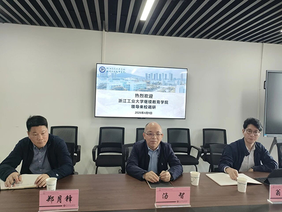 2026年4月9日,浙江工业大学继续教育学院副院长汤智、学历教育部主管翁曦勉、教学建设部主管郑月锋一行莅临浙江信息工程学校(湖州工程技师学院),就浙工大湖州教学站的建设发展、合作拓展及2026年教育部教学点备案等工作开展调研座谈。浙江信息工程学校副校长褚剑飞、培训处处长冯玉如、副处长何琦及相关教师参与交流。