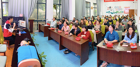 为满足养老护理员学员“双证”需求,提升应急救护能力,2026年4月11日,兰亭街道红十字救护员培训在兰亭成校顺利开展。本次培训的参加对象主要为兰亭成校养老护理员培训学员,大家学习热情高涨,现场气氛热烈。