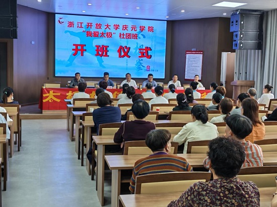 为深入推进社区教育发展,丰富居民精神文化生活,倡导健康向上的生活方式,4月14日,浙江开放大学庆元学院“我爱太极”社团班开班仪式在五三村文化礼堂隆重举行。学院相关领导、授课教师及太极班学员共80余人参加了仪式。