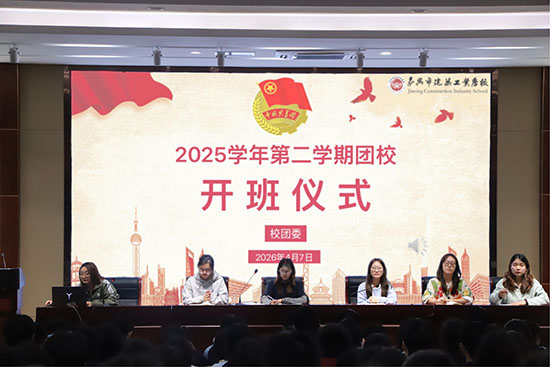 4月7日,嘉兴市建筑工业学校2025学年第二学期团校开班仪式在鼎建报告厅举行。校团委负责人周心怡老师,厚生学院、智能建造系、建筑艺术系、工程管理系的团总支负责人许静如、董莎莎、项之彦、祁玉姗四位老师,以及全体团校学员参加了本次仪式,仪式由校团委黄利婷老师主持。