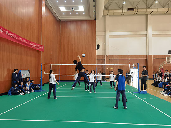 赛场上,各队全力以赴:发球、垫球、传球、扣杀、拦网,动作干脆利落;队员们传球果断、攻防有序,尽显扎实运动功底。比分交替上升,多次战至14平。场下,啦啦队助威声此起彼伏,师生共同见证每一个精彩瞬间,赛场氛围热烈。